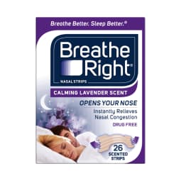 Breathe Right Lavender Nasal strips instantly relieve nasal congestion due to allergies, colds, deviated septum. They are clinically proven to instantly open your nasal passages so you can breathe easier. Breathe Right nasal strips are flexible spring-like bands that gently lift and open nasal...