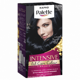Napro Palette Permenent Intensive Creme Colour 1-1 Blue Black provides 100% grey coverage, deep care for Intensive Shine with luxurious colours & long-lasting colour gives up to 30% more shine.