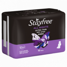Stayfree Ultra Thin All Nights With Wings give you even more comfort and protection. Stayfree Perfect Fit Design provides 4 thin & flexible layers that move with your body.