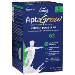 Aptamil Aptagrow 6+ Years Sachets provide a convenient and nutritious solution for parents of fussy eaters. Each sachet contains a blend of key nutrients, including: - Prebiotics and Probiotics: To support digestive health. - Vitamin A: For normal vision. - Iron: For normal energy production and...