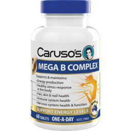 Caruso’s Mega B Complex is a high potency one-a-day formula which contains eight B vitamins, choline and inositol to provide support for general health and wellbeing.