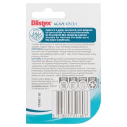 Blistex Agave Rescue balm delivers a revitalising and hydrating experience. Agave Extract moisturises and softens, plus a boost from juicy fruits like peach and Kakadu plum extracts will revitalise the appearance of lips.