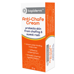 Topiderm Anti-Chafe Cream protects skin from chafing and sweat rash.
