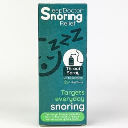 SleepDoctor Throat Spray targets the main cause of snoring: dehydration and vibration of the soft tissue at the back of the throat. The thermo-gel formula tones and lubricates this soft tissue to provide up to 8 hours of snoring relief.
