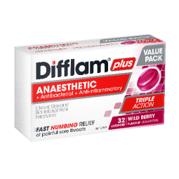 Difflam Plus Sore Throat Lozenge Plus Anaesthetic Blackcurrant 16 Lozenges