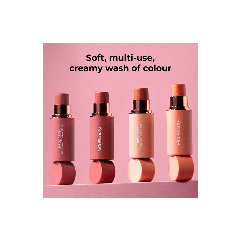 MCoBeauty BABY FACE MULTI-USE CREAM STICK melts effortlessly onto the sin, creating the perfect fresh faced radiant glow. The weightless creamy formula, glides seamlessly onto the skin for a lightweight, flush of colour. Formulated with Jojoba Oil and Coconut Oil to soothe skin and balance moisture, creating natural-looking, healthy glow. With multiple flattering shades to compliment all skin tones, simply swipe on cheeks and lips for a soft pop of colour or build up for a more vivid look. QUICK FACTS:MELTS ONTO SKIN FOR A DEWY-RADIANT COMPLEXIONBURST OF SKIN BRIGHTENING COLOUR FOR A NATURAL-LOOKING FINISHBUILDABLE AND BLENDABLE FORMULACAN BE APPLIED UNDERNEATH OR LAYERED OVER FINISH