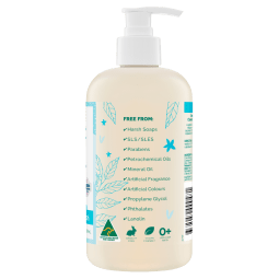 A soap and sulphate free, calming gel to gently wash and keep your newborn, infant or child's skin fresh and clean. Gentle coconut derived cleansing agents and skin softening organic oils help to moisturise and soften, protecting your baby's skin against dryness. No soap and sulphates, perfect for sensitive and eczema-prone skin and also for everyday use. A fresh, natural scent of organic sweet orange and chamomile. Use in the bath, as a shower gel or even as a hand wash on the bathroom sink to cleanse dirty little hands. Organic sweet orange - a gentle anti-bacterial cleanserOrganic evening primrose oil - to help nourish and soften skinOrganic chamomile - to help calm and soothe delicate skinTip: Use as a hand wash on the bathroom sink to cleanse dirty little hands. FREE FROM: Harsh soap, sulphates, petrochemicals, mineral oil, artificial fragrance, parabens, propylene glycol, phthalates and lanolin. pH balanced. Cruelty Free & lovingly Australian owned & made. Dermatologically tested for sensitive skin.