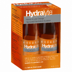Hydralyte Ready to use Electrolyte Solution Orange relieves symptoms of dehydration and helps replace water and electrolytes lost due to vomiting, diarrhoea, heavy sweating, vigorous exercises and occasional hangovers.