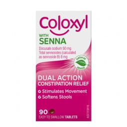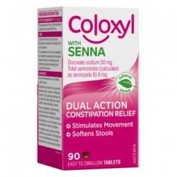 Coloxyl with senna has a dual-action that can assist you when you are suffering from constipation. It provides both stimulant (senna) to encourage the return of normal bowel movement and a stool softener (docusate sodium) to help ensure your comfort and well-being. When taken at night, Coloxyl with senna can provide relief the next morning.