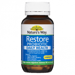 Restore Probiotic Daily Health combines probiotics with prebiotics to help restore digestive balance and support healthy digestion, relief of gas & bloating, bowel regularity & immune system health.