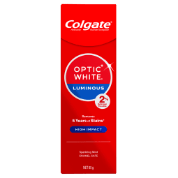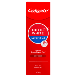 Colgate Optic White Express White teeth whitening toothpaste delivers whiter teeth in 3 days^. It is the only toothpaste with the whitening ingredient dentists use* to remove surface and deeply setin stains. The formula contains 2x the Whitening Ingredient, Hydrogen Peroxide**. The musthave toothpaste for your daily beauty regime, this whitening toothpaste contains all the benefits of a regular daily use toothpaste plus a whiter, brighter, bolder smile. ^For best results, use as directed for 4 weeks. Individual results may vary. *Based on leading toothpastes sold in Australian Grocery and Pharmacy Retailers as of March 2018. Gentle lower strength hydrogen peroxide formula. **2% hydrogen peroxide vs. Optic White Sparkling White 1% formula.