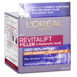 Discover a non-invasive alternative to cosmetic procedures with Loreal Paris Revitalift Filler [+Hyaluronic Acid] Replumping Night Moisturiser to fill lines and re-plump the skin. Revitalift Filler [+Hyaluronic Acid] Intensive Replumping Night Moisturiser contains the highest concentration of Hyaluronic Acid ever formulated in a Loreal Paris cream, to gradually replump your skin. Also enriched with Galanga, a firming extract of plant origin, its exclusive formula fills wrinkles and replumps the skin for a smoother, revolumised appearance. Night after night, your skin looks plumper, firmer, with visibly younger facial contours.