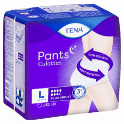TENA Pants Plus Night (Size L) is designed for both men and women and ideal to wear overnight. These incontinence pants provide soft comfort, lie down protection and total security from any leakage, odour or moisture. Our Pants Plus Night is easy to wear and feels just like regular underwear, keeping you safe, dry and confident. Ideal for moderate to heavy incontinence. Close body-fit and textile like, breathable materials especially designed for soft comfortHigh absorbency and effectively locks in liquid for total securityDual Absorption Zone channels any moisture away from the bodyIntegrated leakage barriers provide additional securityOdour Neutraliser to lock away unwanted smellsRecommended for:Comfort wear that feel like regular underwearModerate to heavy urge incontinenceHigh absorption for day use and overnight protectionUnisex pants suitable for both men and women