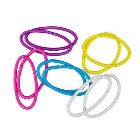 The Mae Elastics Thin Small Assorted Brights (20-pack) are vibrant, lightweight hair ties perfect for adding a splash of color to your everyday hairstyles.