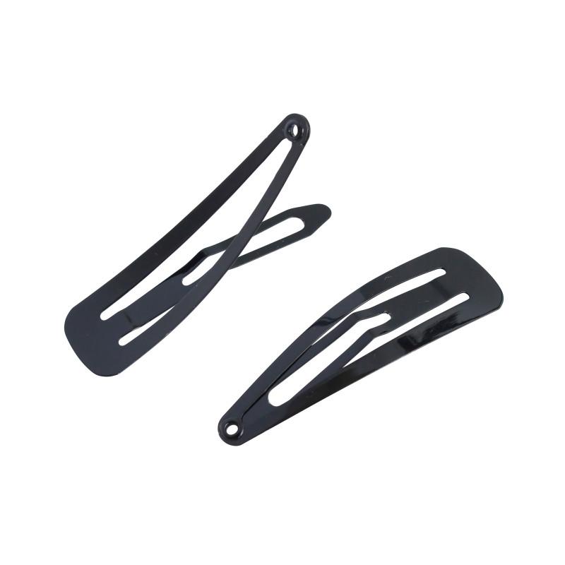 The Mae One Touch Clips 5cm Black (6-pack) are sleek, durable hair accessories designed for effortless styling and secure hold. Each clip features a smooth, matte black finish and a convenient one-touch mechanism, making them easy to use for all hair types.